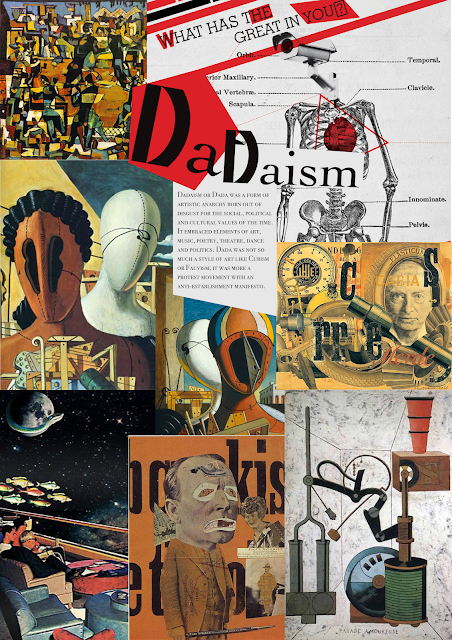 I enjoy the style of DaDaism because it expresses weirdness and imperfectness. I like this because I like creating art that is otherworldly, and thought provoking, and favours aesthetic over plausibility. I also like creating art that isn't too perfect and looks handmade because it gives it edge.